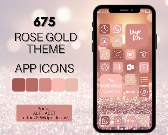 Rose Gold Theme Ios 14 App Icons 675 Pink Iphone App Icons Etsy
